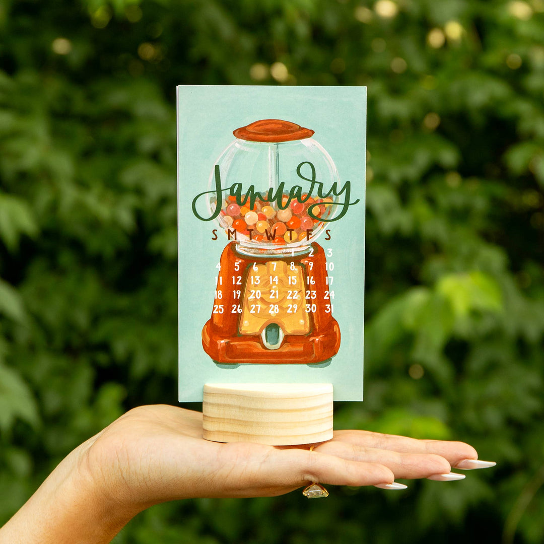 Forever Young 2026 Mini Desk Calendar with Wooden Block